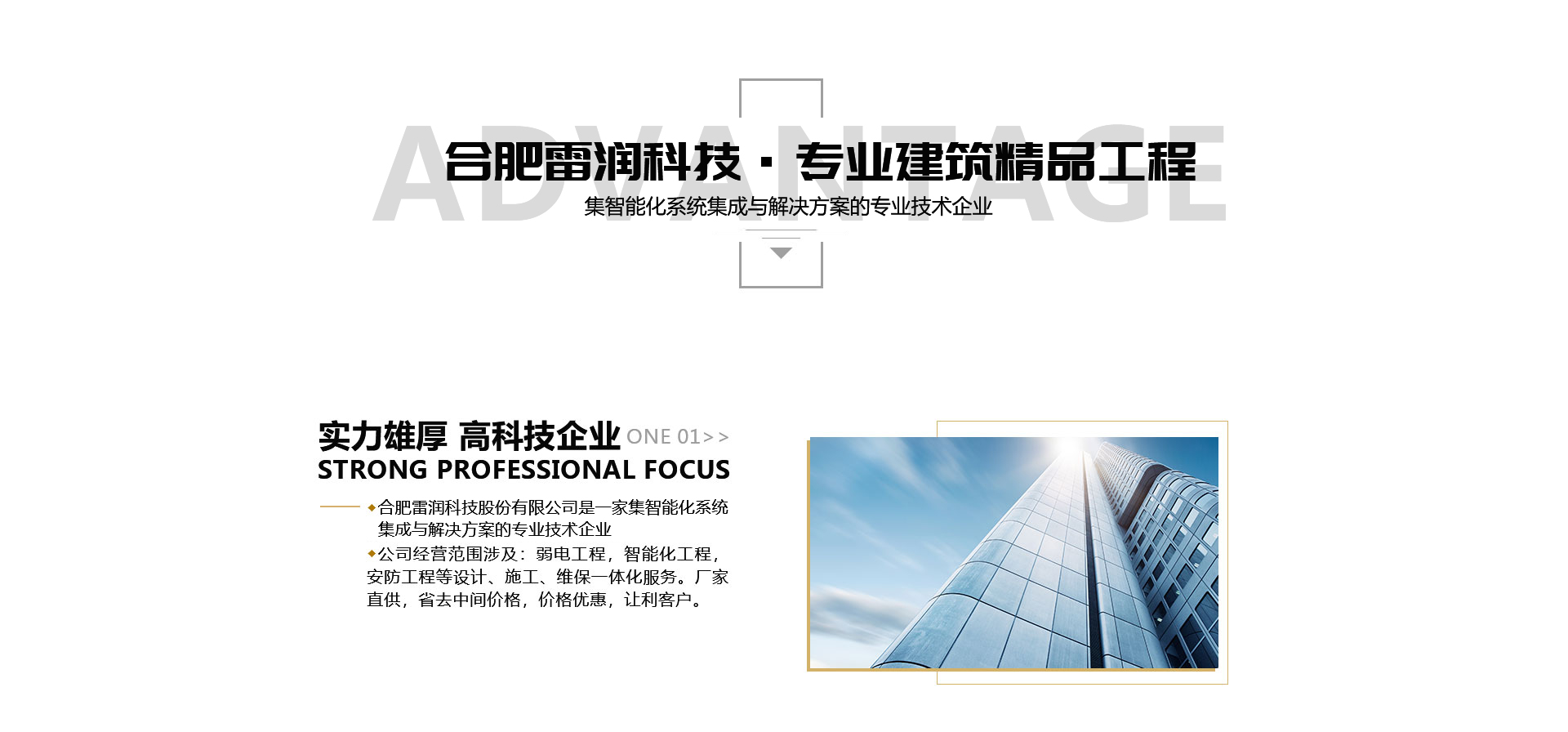 合肥雷潤科技股份有限公司成立于2014年,經過多年的蓄勢發展,已成為行業內頗具影響力的智能化系統集成與解決方案的技術企業。公司經營范圍涉及:建筑智能化系統、綜合布線、安全技術防范系統、車牌識別系統、門禁控制系統、廣播會議多媒體、計算機網絡、應用軟件定制開發、機房工程、多媒體展廳、LED屏信息發布系統等的設計、施工、維保一體化服務。同時代理經銷各類電子電氣產品。我們與國內外眾多品牌供應商建立了良好、穩固的合作伙伴關系(如:海康威視、天地偉業、IBM、華為、H3C、銳捷、APC、康普、Honeywell、R&M、BOSCH、捷順、HID、TOA、迪士普、SAMSUNG等)。為單位、醫院、學校、國企、外企、房產物業等客戶提供的系統集成和產品技術服務,并獲得用戶好評。 我們擁有一支朝氣蓬勃技術的團隊,現有本科學歷以上員工占總人數的80%,并且擁有12名中工程師、7名注冊建造師、各類技術資質工程師15名。具備的技術力量和的實施團隊。我們始終秉承I...